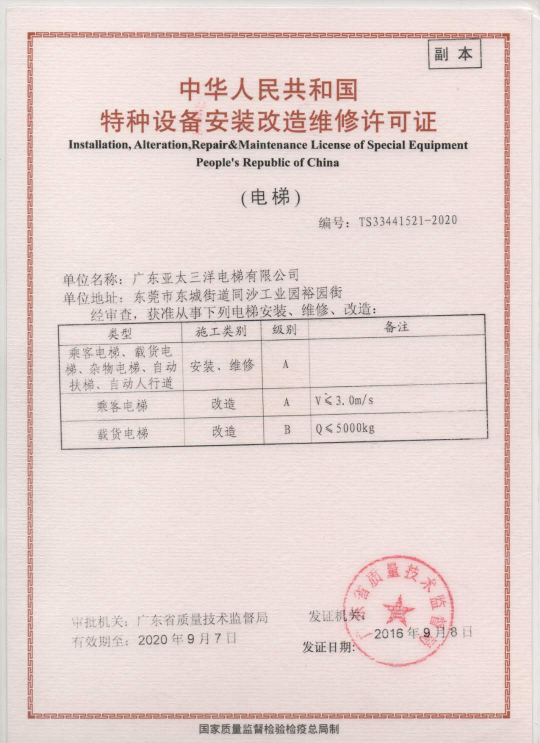 您好!歡迎來到廣東亞太三洋電梯有限公司官網(wǎng)!專業(yè)生產(chǎn)各種電梯設(shè)備的廠家。提供電梯外貿(mào)出口業(yè)務(wù)歡迎咨詢13528755601